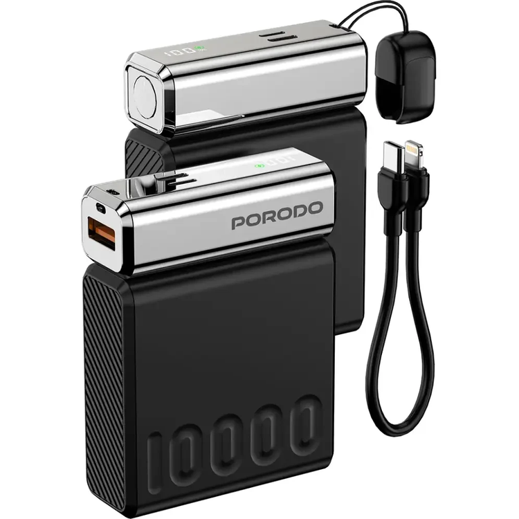 پاوربانک 10000 میلی آمپر 35 وات پرودو Porodo Chrome Volt 10000mAh Power Bank PDPBFCH088