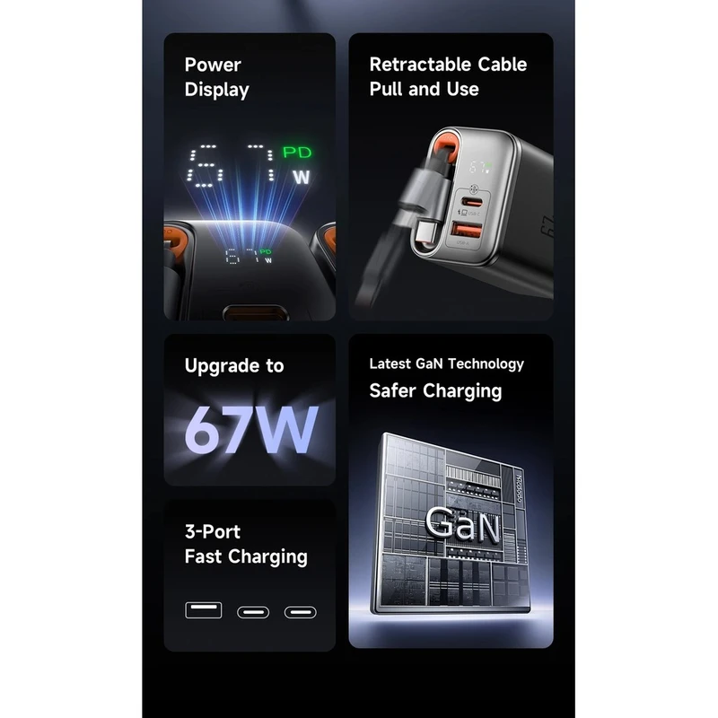 شارژر دیواری 67 وات مک دودو مدل CH-4100 به همراه کابل متصل به بدنه USB-C