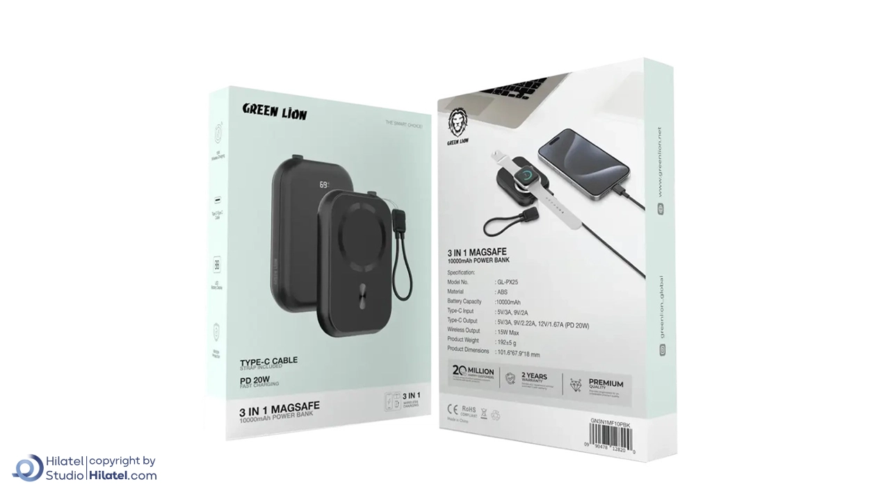 پاوربانک 10 هزار وایرلس گرین لاین Green Lion GL-PX25