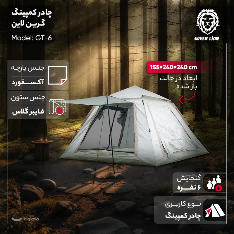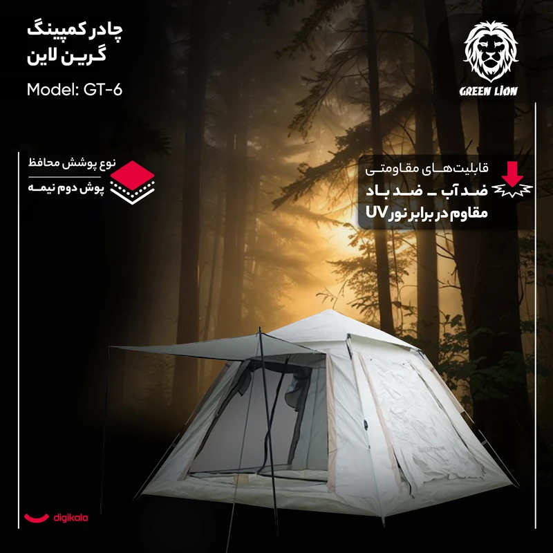 چادر مسافرتی گرین لاین مدل GT-6 ظرفیت ۶ نفر بژ