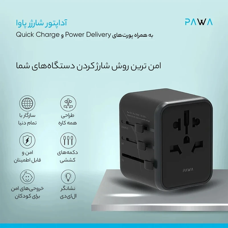 شارژر دیواری پاوا مدل PW-UTA2024-BK