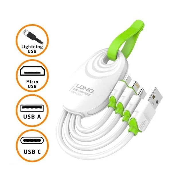 کابل تبدیل USB به microUSB / USB-C / لایتنینگ الدینیو مدل LC95 طول 0.15 متر