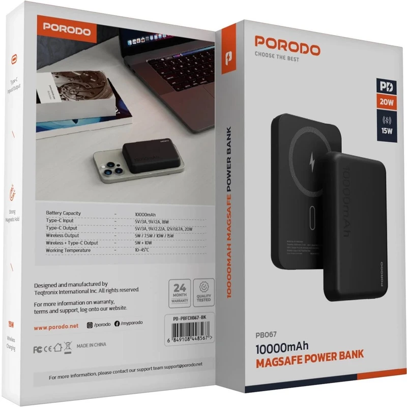 پاوربانک پرودو مدل PB067 ظرفیت 10000 میلی آمپر ساعت سفید