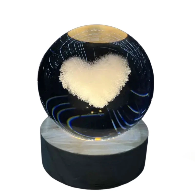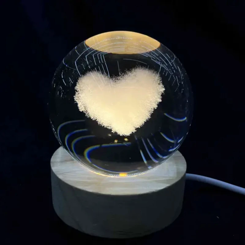 چراغ خواب مدل گوی کریستالی طرح قلب 3D