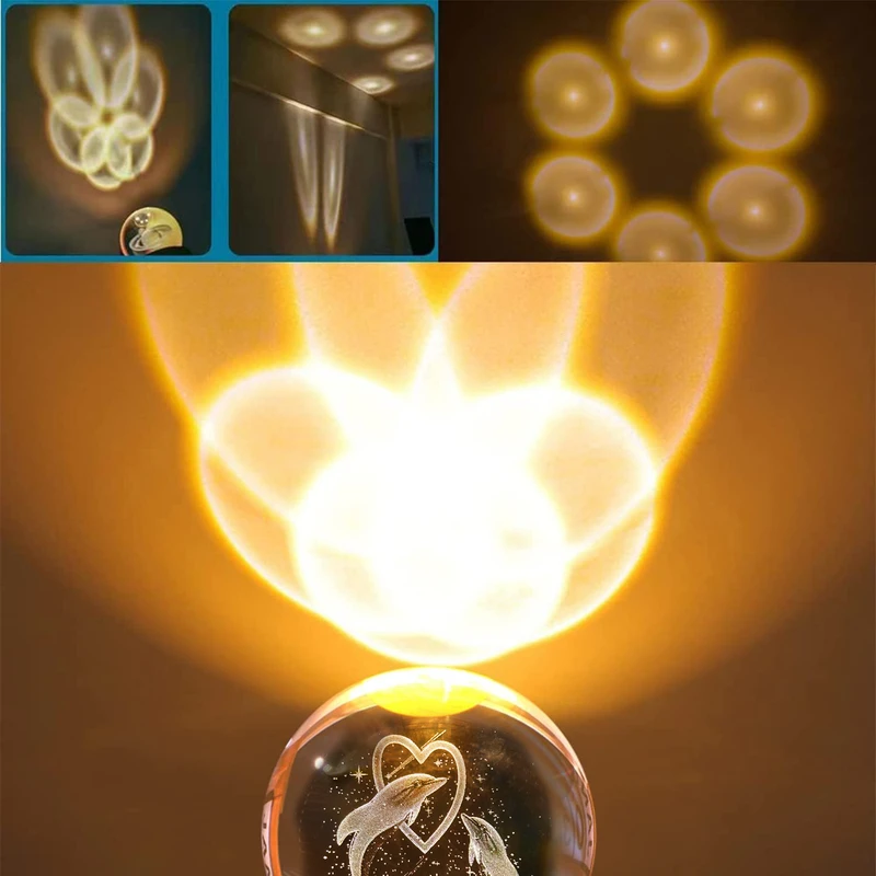 چراغ خواب مدل گوی کریستال 3D طرح دلفین و قلب