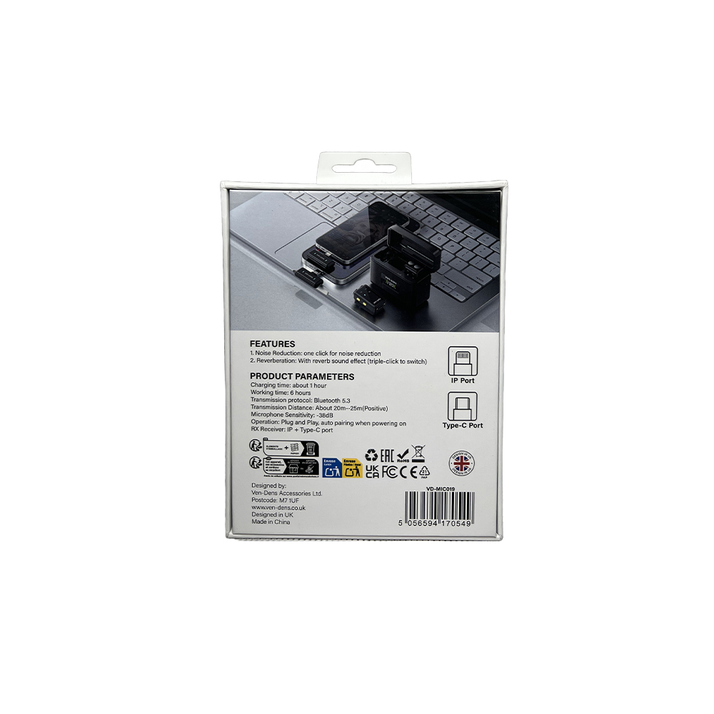 میکروفن یقه ای ون دنز مدل VD-MIC019 با درگاه های اتصال تایپ سی و لایتنینگ