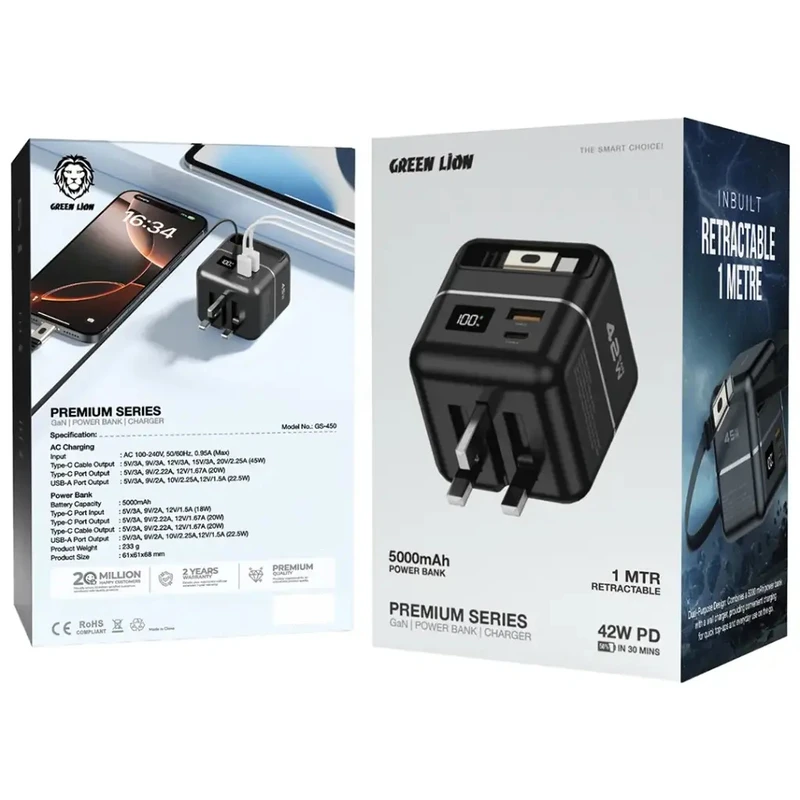 پاوربانک گرین لاین مدل GaN Premium ظرفیت ۵۰۰۰ میلی‌آمپر
