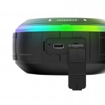 نورپردازی RGB تعبیهشده در بدنه اسپیکر جلوهای جذاب ایجاد میکند و آن را برای مهمانیها، شبنشینیها و محیطهای کمنور به گزینهای چشمنواز تبدیل میسازد. طراحی کوچک و وجود بند آویز نیز حمل آن را بسیار ساده کرده و امکان نصب یا آویزان کردن در فضاهای مختلف را فراهم میکند.