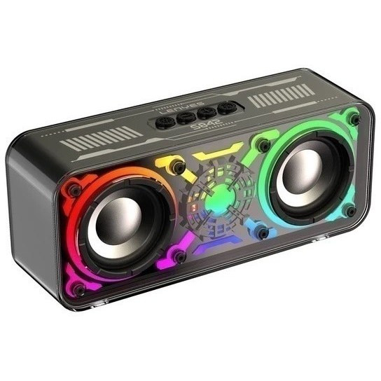 نورپردازی جذاب RGB در اطراف اسپیکر جلوهای زیبا و محیطی دلنشین ایجاد میکند و آن را برای استفاده در شب یا محیطهای کمنور مناسبتر میسازد. طراحی جمعوجور و بدنه مقاوم باعث شده مدل S842 بهراحتی قابلحمل باشد و در خانه، محل کار، خودرو، سفر و فضای باز عملکرد مناسبی ارائه دهد.