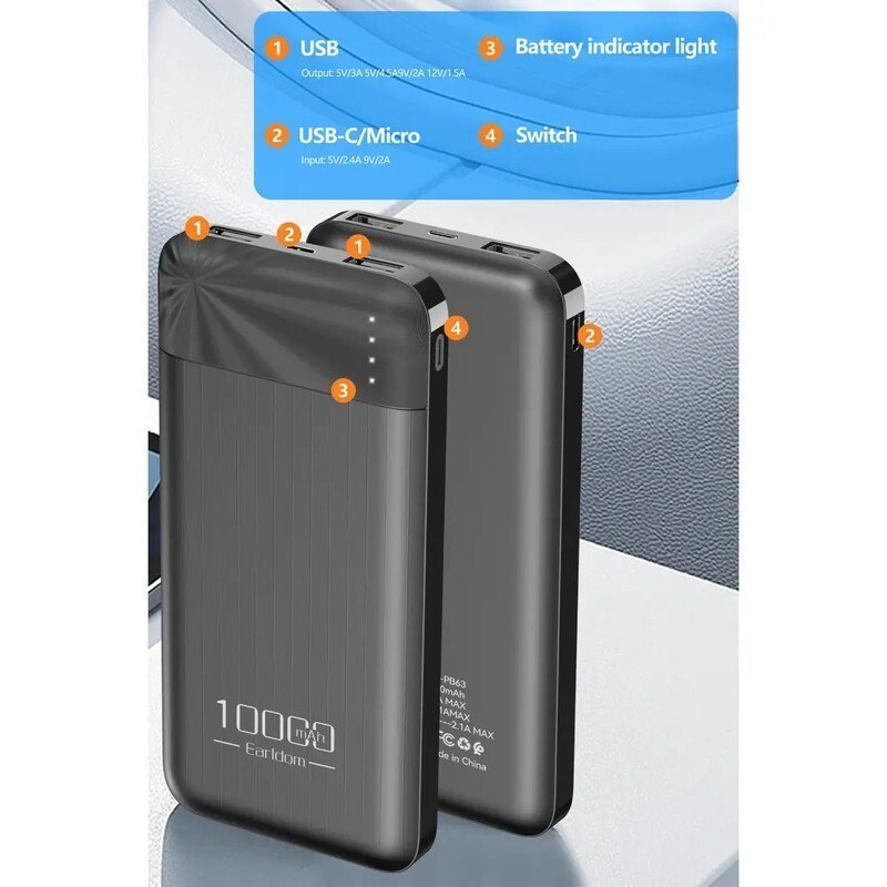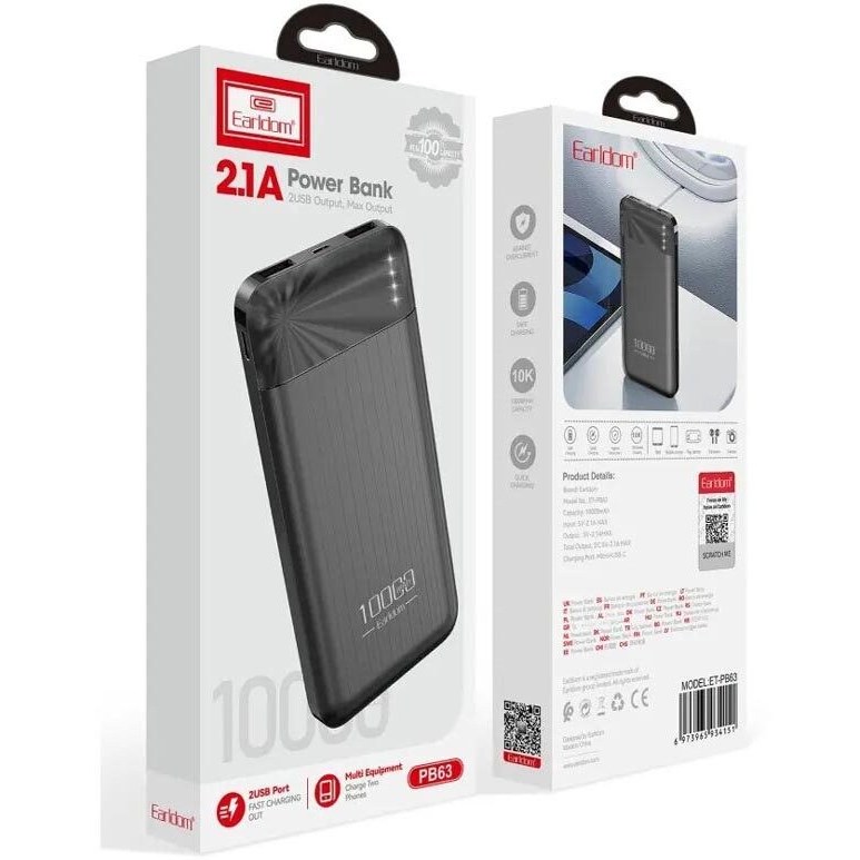 پاوربانک ارلدام مدل ET-PB63 ظرفیت 10000 میلی آمپر ساعت