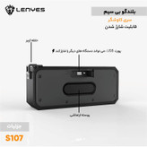 اسپیکر بلوتوثی قابل حمل S107 از جمله اسپیکرهای کمپانی لنیز است که این روزها در زمینه تولید لوازم جانبی بسیار پرکار ظاهر شده است. ابعاد این اسپیکر بسیار مناسب بوده و میتوان آن را با خود در کیف برای سفرها به همراه برد و استفاده کرد همچنین با توجه به طراحی زیبا بسیار مناسب برای روی میز در محل کار یا منزل میباشد.ابعاد آن در حدود 195x83x48 میلیمتر است. همچنین این اسپیکر بسیار سبک بوده و وزنی در حدود 580 گرم دارد. بنابراین برای حمل آن به زحمت نخواهید افتاد. فرکانس پاسخگویی در این مدل لنیز 80 هرتز تا 18 کیلو هرتز است. منبع انرژی این اسپیکر باتری است ظرفیت باتری آن 3000 میلی آمپر ساعت خواهد بود. اسپیکر S107 دارای یک درگاه USB، یک درگاه AUX، درگاه شارژ DC 5V تایپ میکرو میباشد.دکمه های اسپیکر بر روی اسپیکر تعبیه شده است و به ترتیب از چپ به راست یک دکمه ON/Off؛یک دکمه تغییر مود؛ یک دکمه پلی مخصوص پخش و مکس و پاسخ دهی و رد تماس و قطع کردن تماس و دو دکمه ولووم مخصوص کم و زیاد کردن صدا و عقب و جلو بردن موزیک میباشد.بزرگترین ویژگی این محصول ضد آب بودن این اسپیکر (IPX7) میباشد که باعث میشود بدون ترس در محیط مرطوب به موزیک گوش دهید و لذت ببرید.