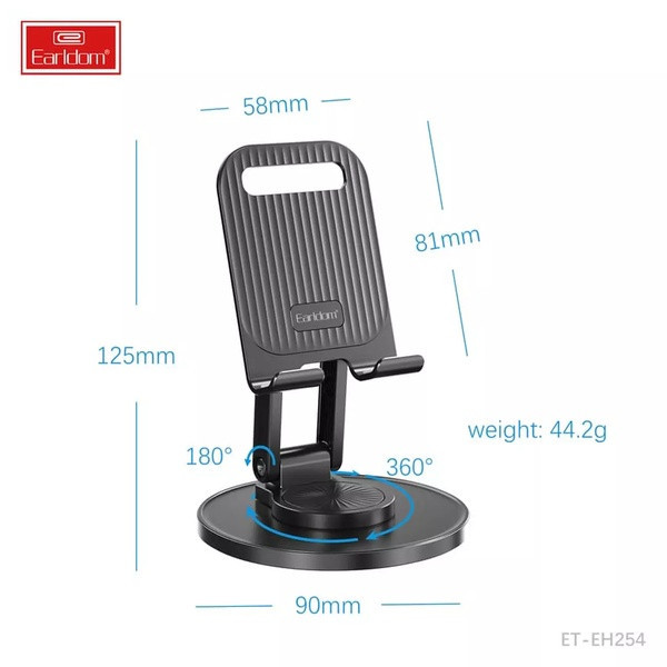 پایه نگهدارنده ارلدام مدل EH254 یک استند رومیزی با طراحی تاشو و قابلیت تنظیم زاویه است که امکان استفاده راحت از گوشی یا تبلت را در زوایای مختلف فراهم میکند. این پایه با بدنهای از پلاستیک ABS مقاوم و بخشهای نگهدارنده از جنس سیلیکون، از دستگاه شما در برابر خطوخش محافظت میکند. طراحی جمعوجور و قابلیت تاشوندگی این محصول، حمل و نگهداری آن را آسان میسازد.