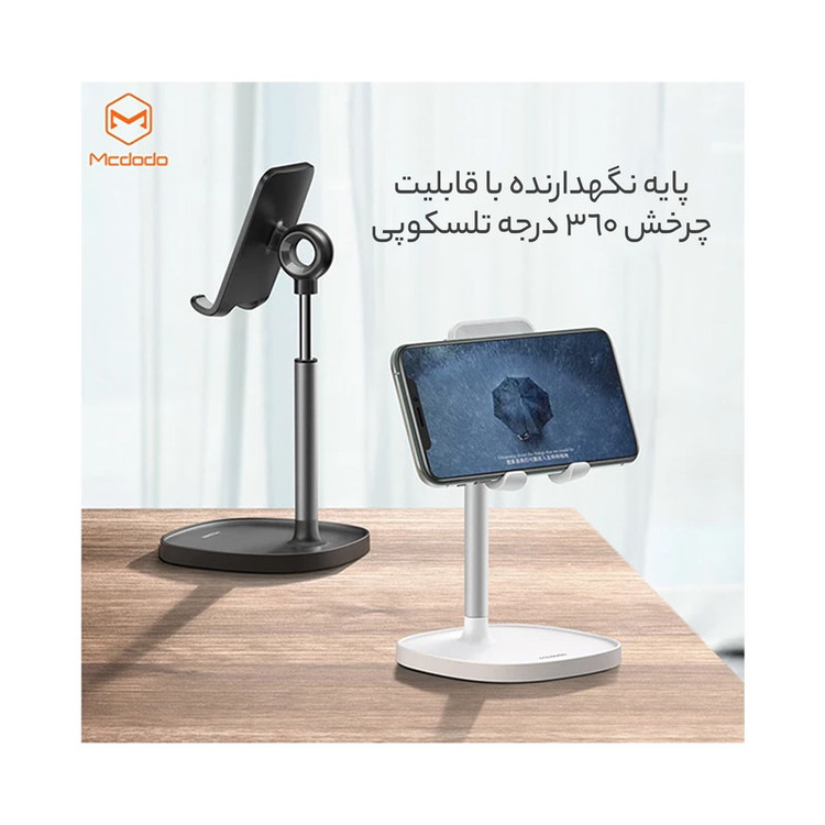 پایه نگهدارنده گوشی و تبلت مک دودو مدل TB-7821 با طراحی حرفهای، بدنه فلزی با کیفیت و قابلیت تنظیم زاویه، گزینهای مناسب برای تماشای فیلم، مطالعه یا مکالمه تصویری است. طراحی تاشو و پایه ضدلغزش، ثبات و راحتی استفاده را تضمین میکند.