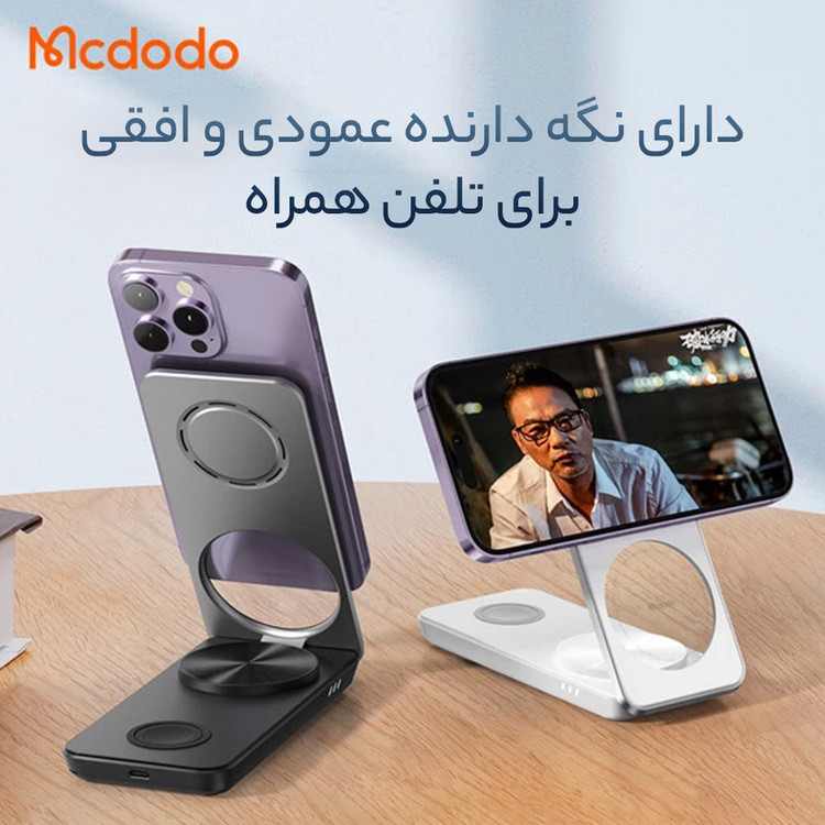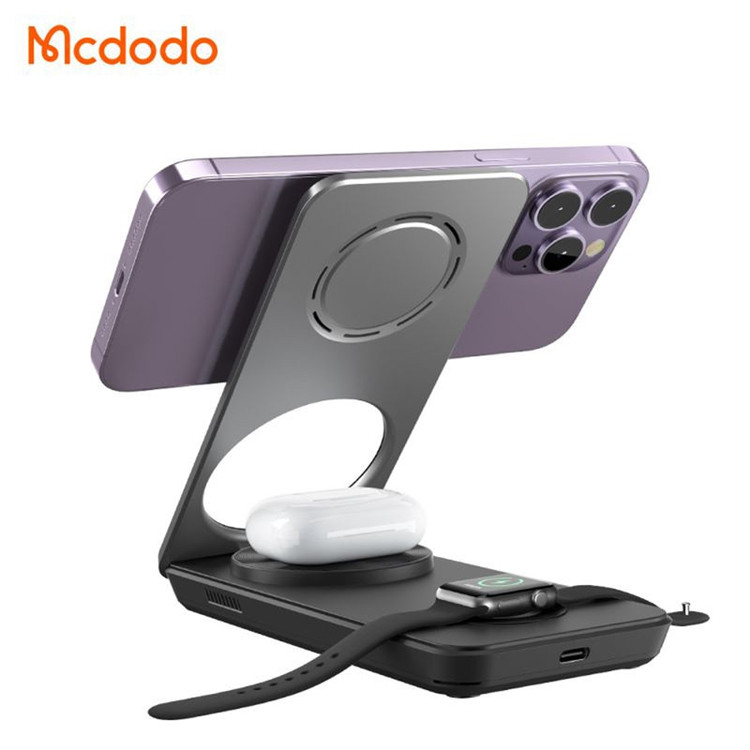 شارژر بیسیم مک دودو مدل CH-115 یک ایستگاه شارژ بیسیم ۳ در ۱ است که بهطور خاص برای کاربران دستگاههای دارای استاندارد Qi طراحی شده است. این شارژر با توان خروجی مجموعاً ۲۵ وات، امکان شارژ همزمان گوشی هوشمند، ساعت هوشمند و هدفون بیسیم را فراهم میکند. طراحی تاشو و جمعوجور آن، حمل و استفاده از آن را در منزل یا سفر آسان میسازد.