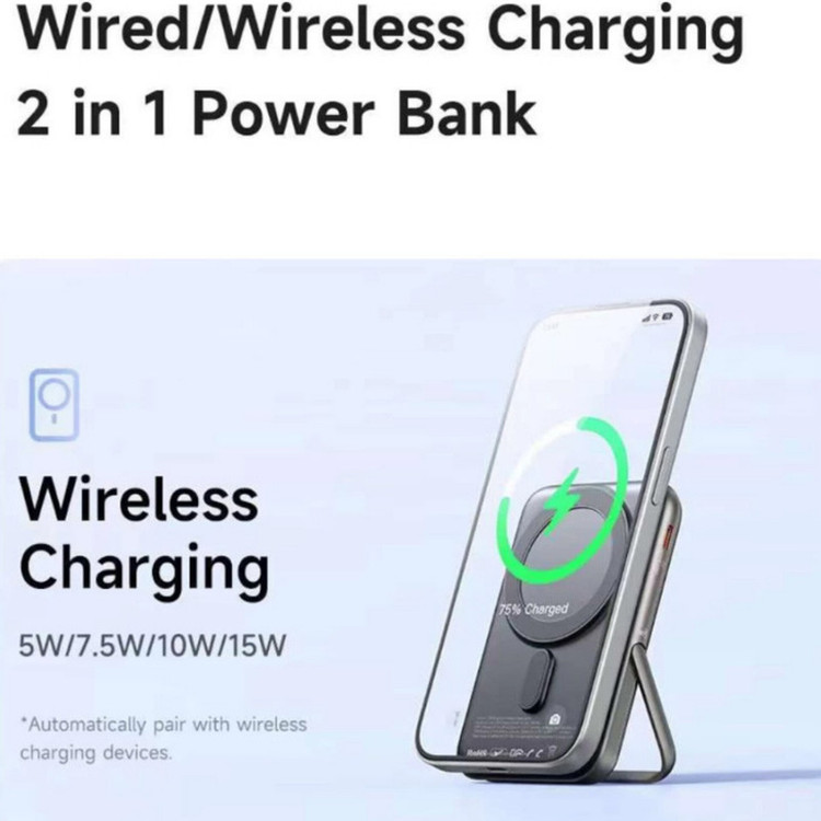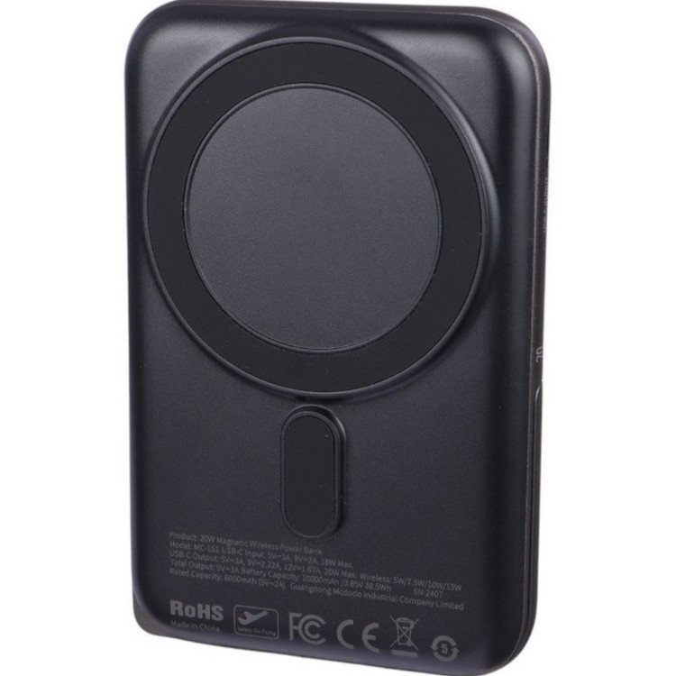پاوربانک مک دودو مدل MC-1511 یک پاوربانک قدرتمند، خوشساخت و چندکاره است که با ظرفیت 10000 میلیآمپر ساعت، نیاز شارژ روزمره شما را بهخوبی تأمین میکند. این پاوربانک مجهز به قابلیت شارژ سریع باسیم با توان ۲۰ وات و شارژ بیسیم با توان ۱۵ وات است. طراحی مگنتی این محصول، اتصال ایمن به پشت گوشیهای سازگار با MagSafe را ممکن میسازد و پایه پشتی آن امکان استفاده از گوشی در حالت استند را فراهم میکند. مک دودو MC-1511 مناسب برای استفاده روزانه، سفر و حتی میز کار است.